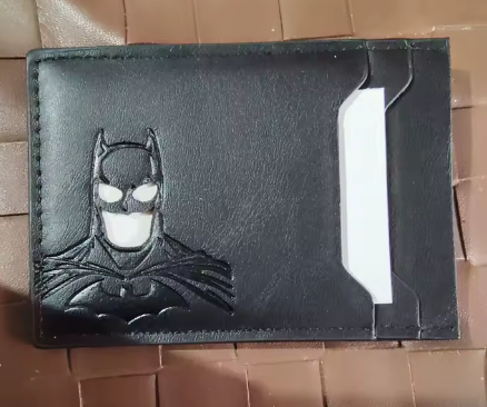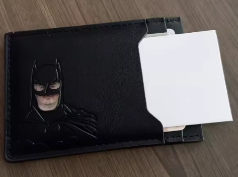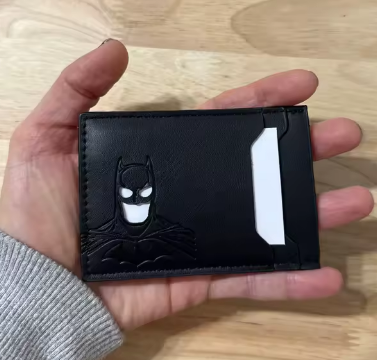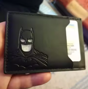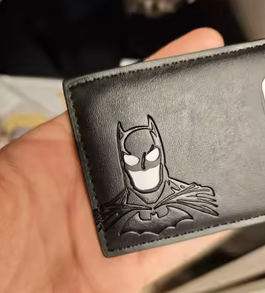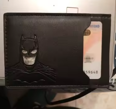 La verdad me sorprendió para bien. La uso todos los días y sigue intacta. Es delgada pero sí entran mis tarjetas y efectivo sin problema. El grabado de Batman se ve elegante.